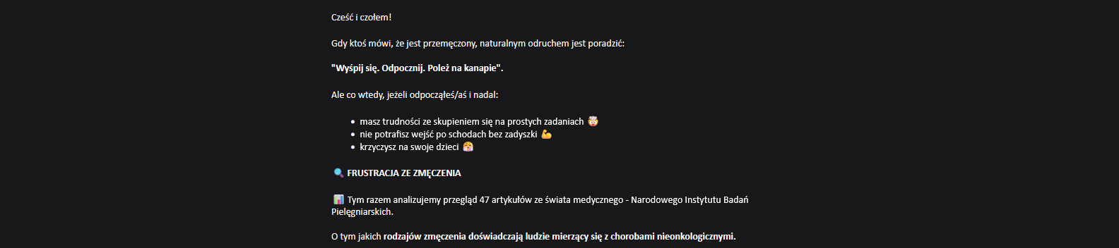 Coś z zupełnie innej branży. Od kilku lat zdarza mi się słuchać podcastów psychologicznych, a ten newsletter idealnie się w to wpisuje. Wysyłany jest co dwa tygodnie o 9:00, a jego forma różni się od typowych newsletterów IT - nie zawiera listy linków do artykułów.
