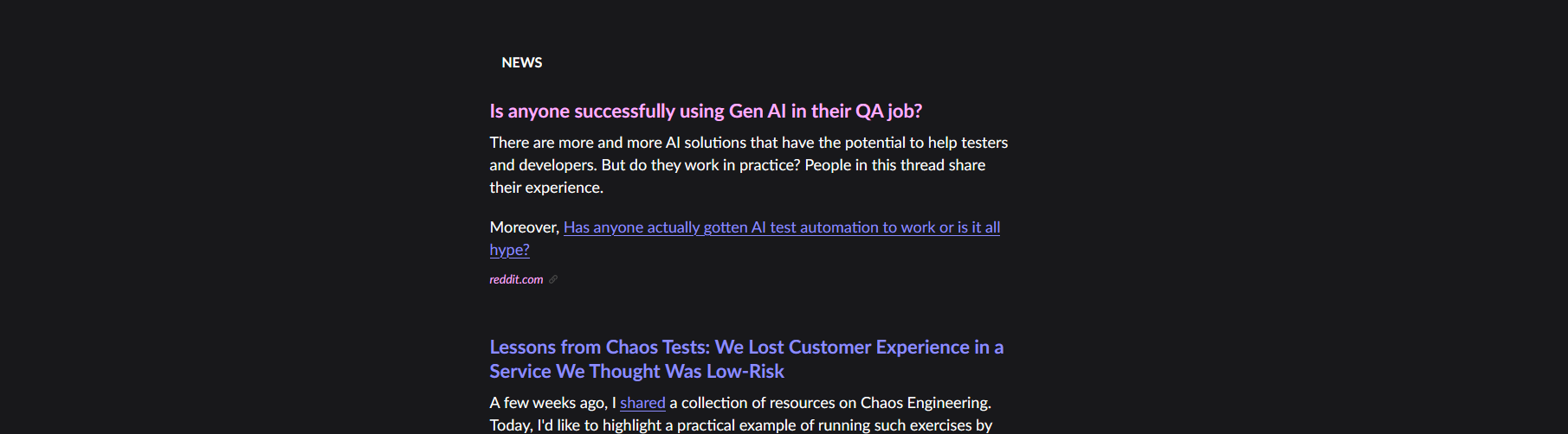 Jedyny newsletter stricte QA, do którego jestem zapisany. Autorem jest Polak - Dawid Dylowicz - ale treść jest w języku angielskim. Według strony zapisanych jest ponad 9 tysięcy osób. Newsletter trafia do skrzynki co tydzień, w poniedziałki.